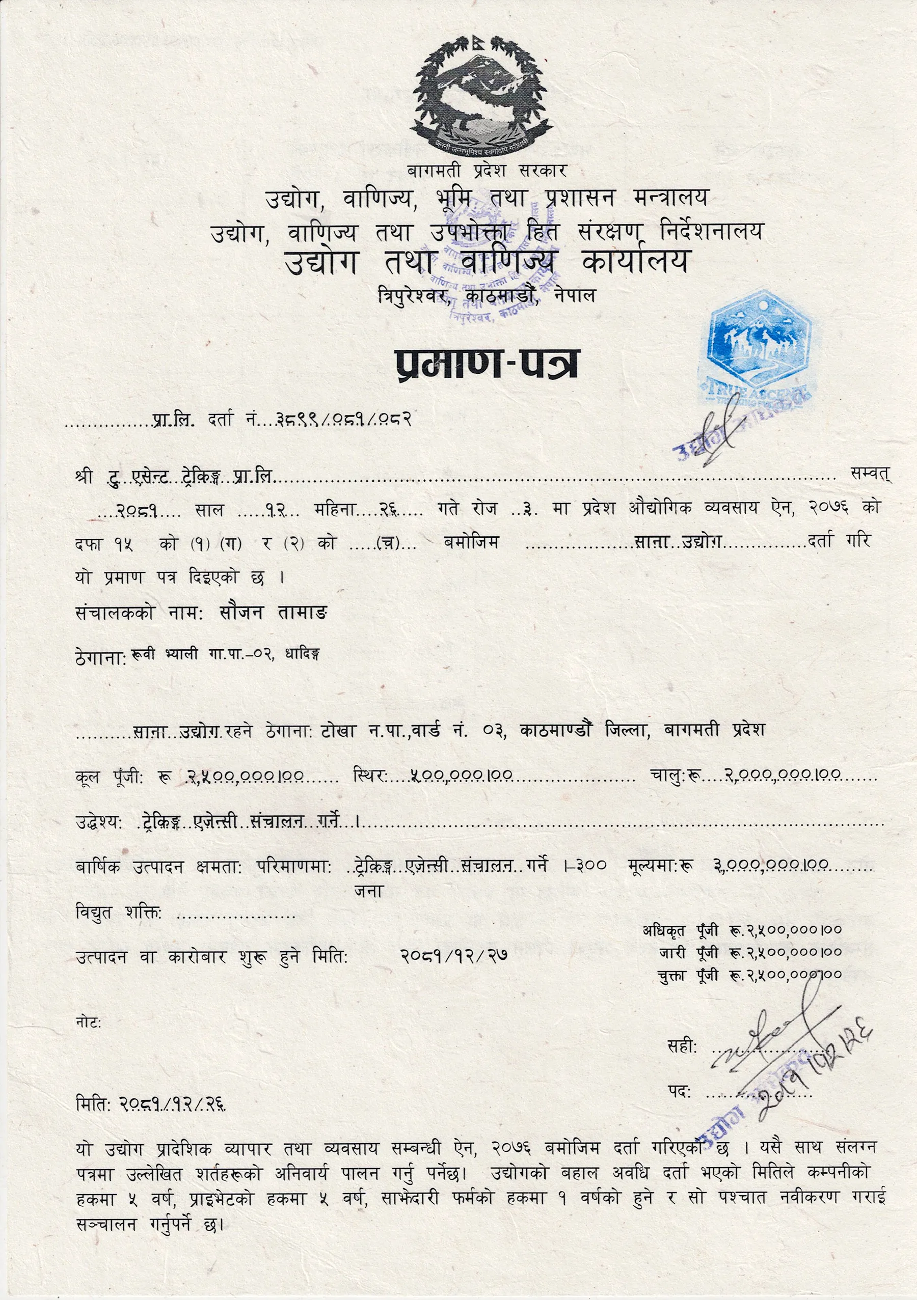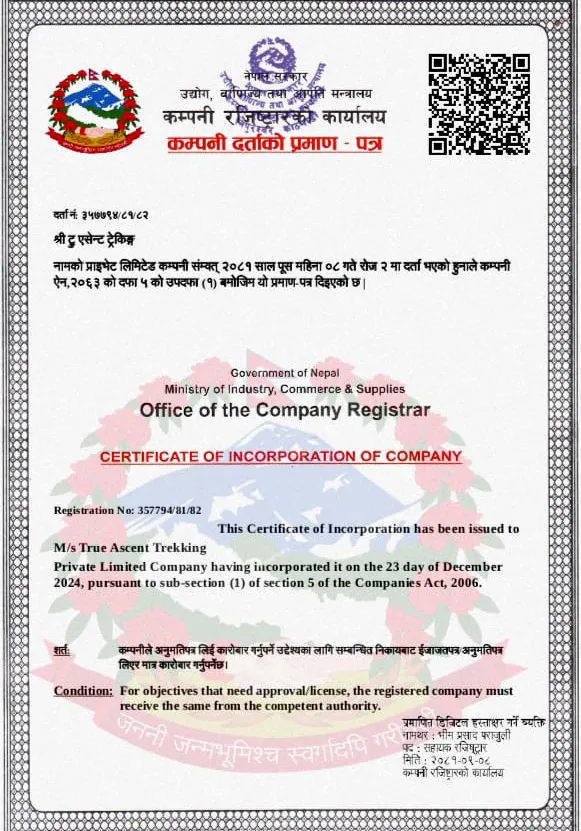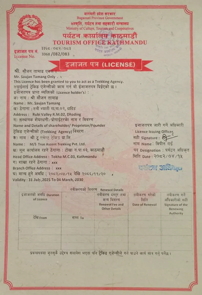 Official documents page of True Ascent Treks.