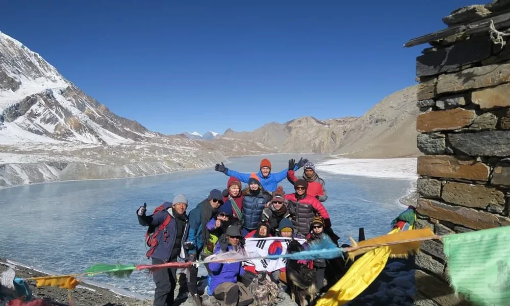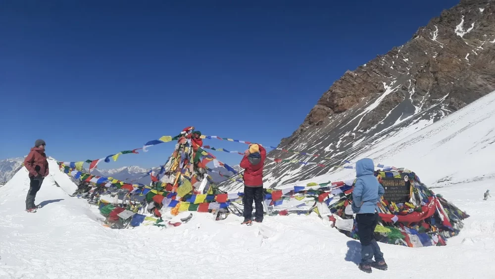 We will also visit the Tilicho Base Camp at 4150 meters for an expansive view of the Marsyangdi Valley and the Tilicho Peak. In addition to that, we will also climb the Thorong La Pass, reaching an altitude of 5416 meters, the highest point of the 15-day Classic Annapurna Trek.