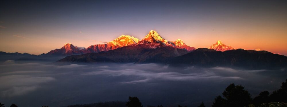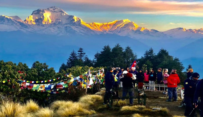 Spectacular sunrise over Annapurna and Dhaulagiri ranges from Poon Hill